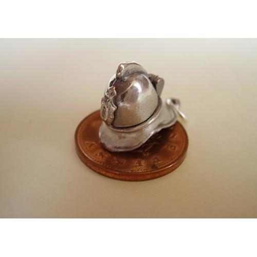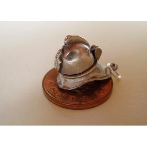 Sterling silver FIREMAN'S HELMET charm which measures approx 20 x 15 x 10mm and weighs approx 3.1g......Opening the charm reveals an AXE