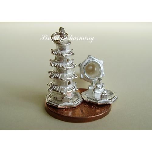 Pagoda Temple Opening Sterling Silver Charm