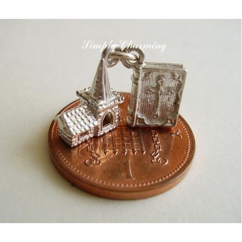 Sterling silver CHURCH & BIBLE charm which measures approx 6 x 18 x 12mm and weighs approx 2.0g