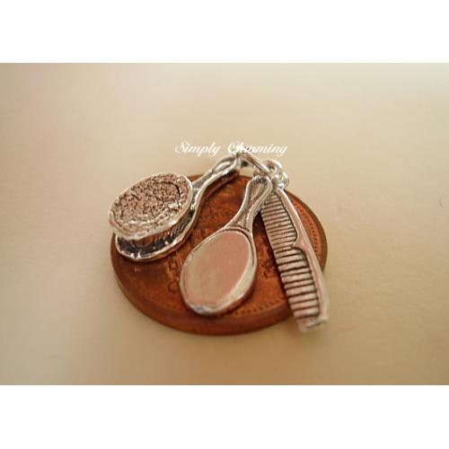 Sterling silver HAIR BRUSH, COMB & HAND MIRROR charms....Each charm measures approx 20mm in length,all three charms weigh approx 3.0g