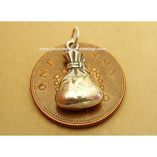Sterling silver MONEY/SWAG BAG charm which measures approx 10 x 15 x4mm and weighs approx 2.2g.