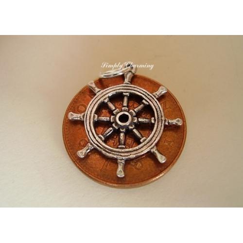 Sterling silver SHIPS WHEEL charm which measures approx 20 x 22 x 2mm and weighs approx 1.4g