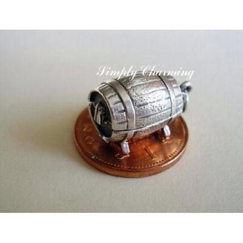 Sterling silver BEER BARREL charm which measures approx 10 x 20 x 12mm and weighs approx 3.0g.....Opening the charm reveals the drunken man