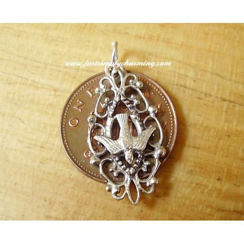 Sterling silver CONFIRMATION CHRISTENING DOVE charm / pendant which measures approx 13 x 25 x 1mm and weighs approx 1.4g.