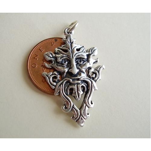 Sterling silver GREEN MAN pendant measures approx 20 x 35 x 1mm and weighs approx 4.4g