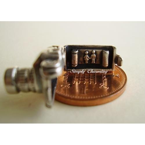 Sterling silver CAMERA charm which measures approx 20 x 10 x 12mm and weighs approx 3.2g......Opening the film compartment reveals an image of a young couple holding hands