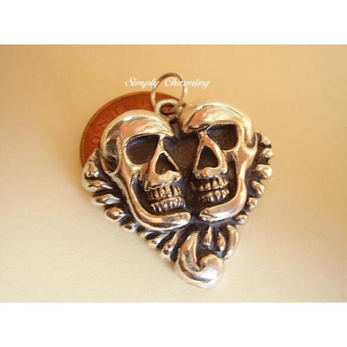 Sterling silver DOUBLE SKULL pendant which measures approx 30 x 30 x 8mm and weighs approx 18.7g
