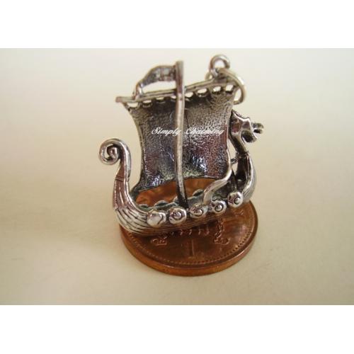 Sterling silver VIKING SHIP LONGBOAT charm which measures approx 21 x 7 x 23mm and weighs approx 4.7g