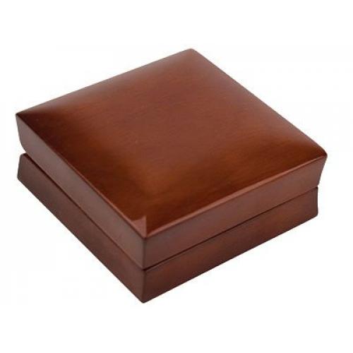 A richly coloured, highly polished wooden box, with a cream leatherette pad. Comes complete with FREE protective white outer box. Box size : Width : 7.6cm Depth : 7.6cm Height : 3.0cm