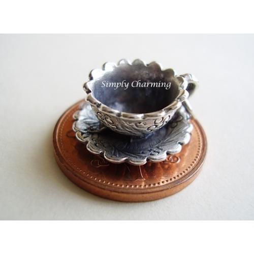 Sterling silver CUP and SAUCER charm which measures approx 16 x 8 x 16mm and weighs approx 2.2g